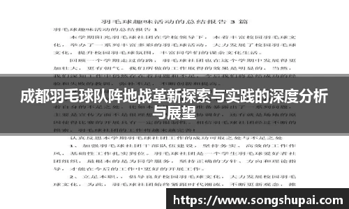 本文围绕“深圳羽毛球队快攻战术解析与未来发展展望”主题,深入探讨了该球队在快攻战术方面的应用与成效。首先,文章将对深圳羽毛球队的快攻战术进行详细解析,包括其基本概念、技术特点及实现方式;其次,分析当前队伍所面临的挑战和问题,并提出相应的解决方案;接着,探讨快攻战术在比赛中的实际应用效果以及对于球员训练的重要性;最后,对深圳羽毛球队未来的发展方向进行展望,包括人才培养、技战术创新等方面。通过全方位的...